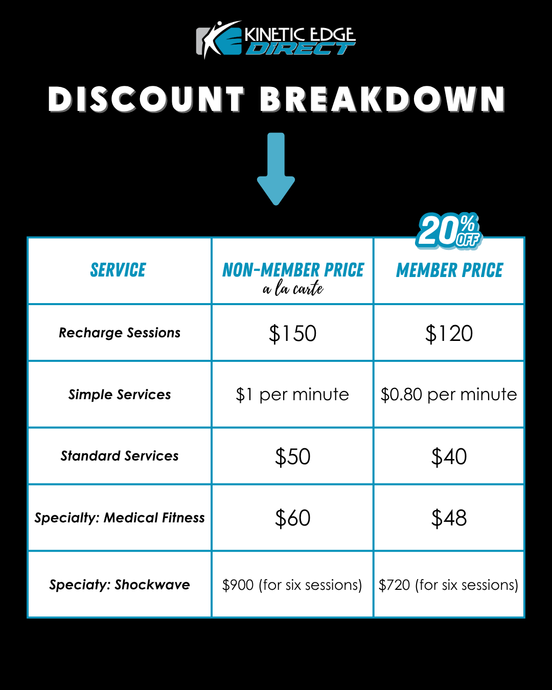 At Kinetic Edge, we believe you should not have to deal with long wait times, insurance limitations, or confusing approval processes to feel your best. That is why we created Kinetic Edge Direct, a simple cash-based membership program designed to support your health, comfort, and performance throughout the year.